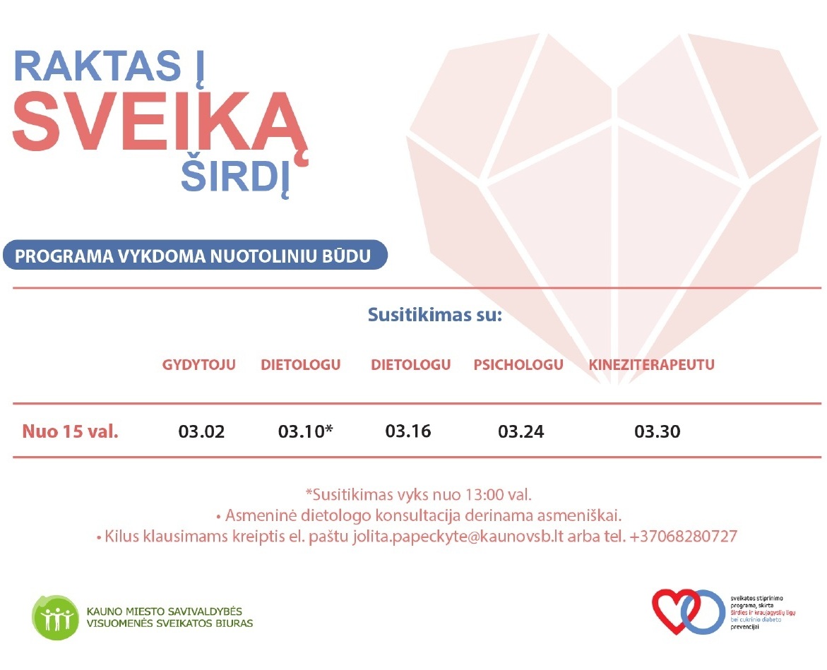 Programoje gali dalyvauti visi norintys pilnamečiai asmenys. Užsiregistruoti galima, nurodytais kontaktais plakate (pridedamas) arba naudodamiesi nuoroda ,,Raktas į sveiką širdį"